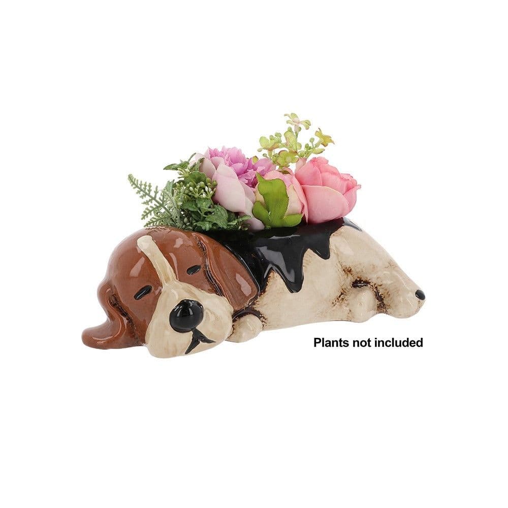 Village Pottery Glazed Ceramic Beagle Shaped Tall Planter